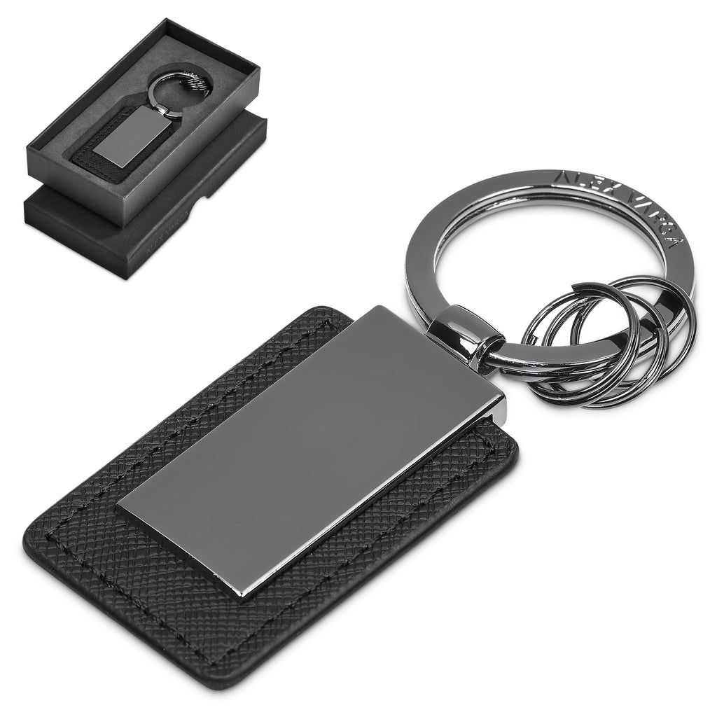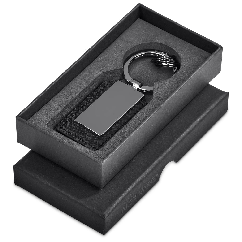 The Alex Varga collection presents a selection of understatedly elegant keyholders featuring gun metal finish zinc alloy parts, combined with a textured PU.